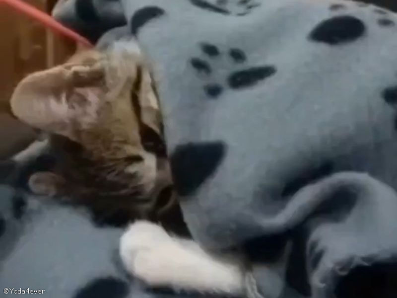 スヤスヤ眠る猫が「あと5分だけ寝かせて…」と抵抗する
