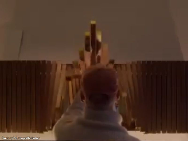 猫が棚の上のおやつをこっそり狙って…派手に失敗する(動画)
