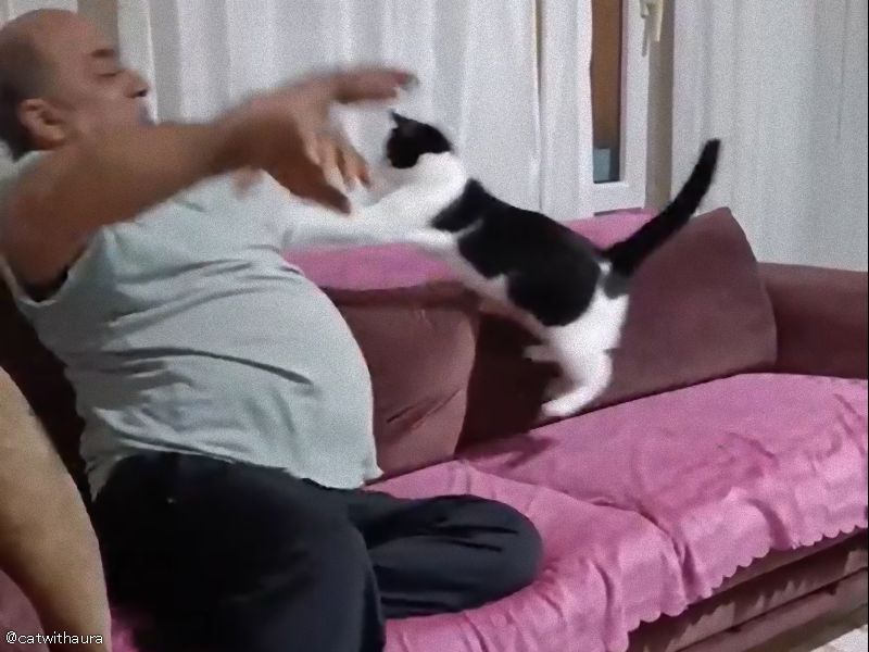 「うちのパパと猫は…いつもこうしてプロレスごっこが始まる!」