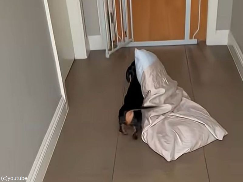 「大きすぎる枕が相棒」小さな犬が家中を大移動する姿に癒される(動画)