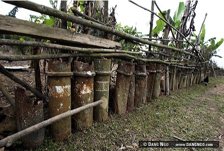 爆弾フェンス。ラオスは最も戦禍の激しい国のひとつで、爆弾の残骸もたくさんあるそうです。レモンがあればレモネードを作るように、爆弾の残骸があればそれを使うものだ、とのこと。このフェンスを乗り越えるどころか近づきたくないですね…。