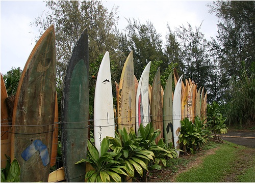 サーフボードフェンス。台風が来たら倒れそうではありますが、これもいい感じ。