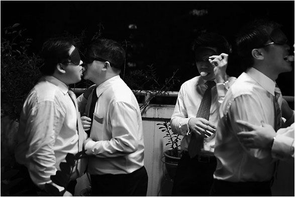 モノクロ写真というのは結婚式の定番でおしゃれですよね。角度と小道具をちょっと変えるだけでヒッチコックになってしまう例です。