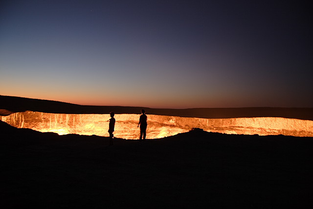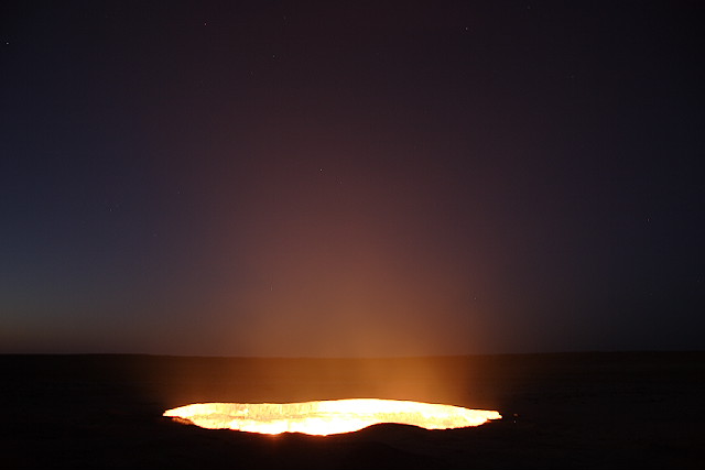 何もないトルクメニスタンの平原にぽっかり燃える穴が。異世界にでも通じてそうです。