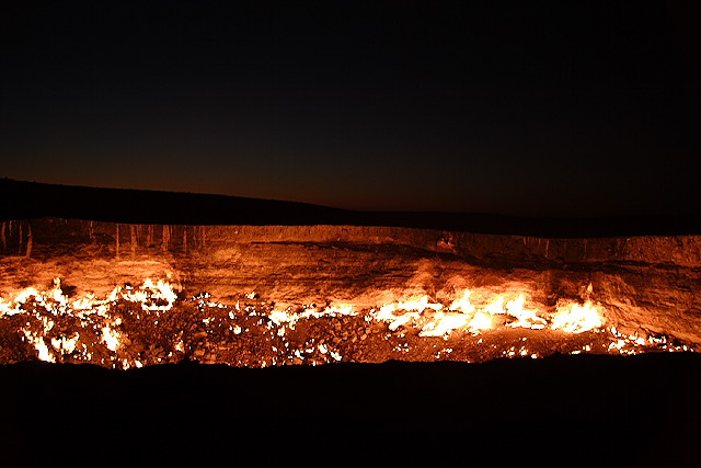 火山口にも見えますが、燃えているのは天然ガスの穴で平原にぽっかり開いています。
