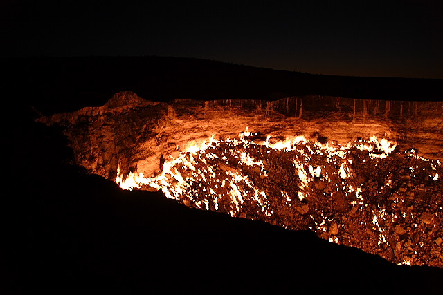 煉獄の炎に包まれたかのような直径60mの巨大なこの穴は、数十年間昼夜を問わず今も燃え続けているそうです。