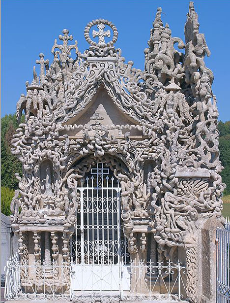 シュヴァルは大人しい郵便屋さんだったそうで、昼は郵便物を配り、夜は建築の世界に魅せられ、コツコツとたった一人でこの傑作をつくりあげたのです。彼は建築の勉強をしたこともなく、正式なデザイン知識もなく、自分で建てながら学んでいったそうです。何十年もかけたあと1900年初期に完成しました。1万日以上もかけ、完成するまではほとんど誰も知らなかったそうです。