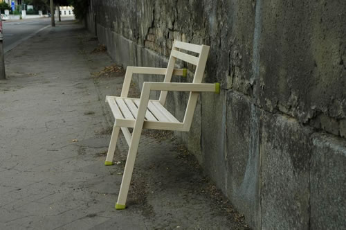 この椅子はドイツの芸術大学の学生、シモン・ハーバートさんが展示したものです。展示会のテーマはパラサイトだったらしく、確かに支えられる壁があって始めて椅子として成立する構造となっています。全体重を支えて普通に座れるのか、腰掛けるときに少し不安になりそう。