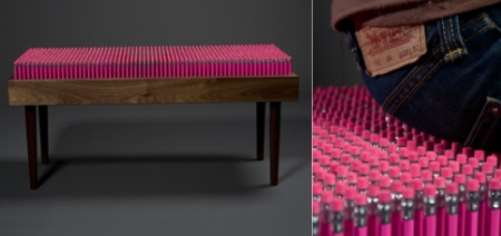 名前の通り鉛筆を並べて作ってあります。鉛筆といっても普通の鉛筆ではお尻に六角形の跡が彫りこまれてしまうので、消しゴム付きです。使った鉛筆の数1600本。おもしろいのは各鉛筆を取り外せて鉛筆として使えるそうです。座り心地はどうなんでしょうね。戻した鉛筆をうっかり逆さまにしないことを祈ります。