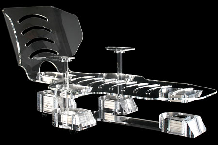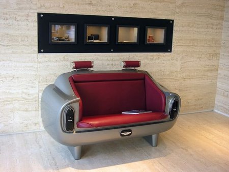 ソファスタイルですが、Aston Martin DB6の後部のレプリカです。Astonと同じ色でペイントされ、赤いレザーでフィニッシュを決めています。きっとガレージに置くと完璧でしょう。ちなみにヘッドレストを含まずに7300ドル(約73万円)以上の値段らしいです。