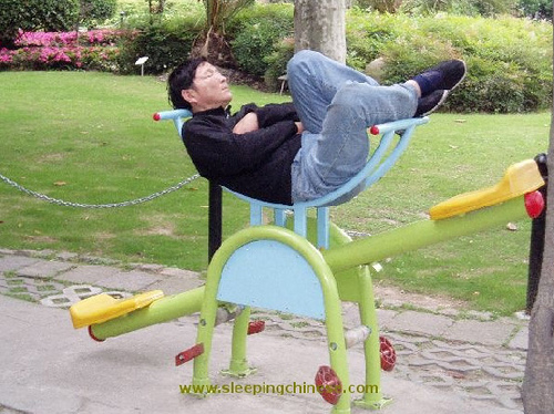 これは凄いテクニック、若くしてどこでも寝れる才能であふれています。芸術ともいえるバランスを保っていますね。