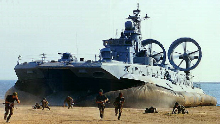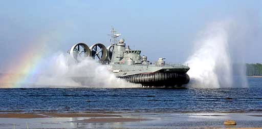 ロシア海軍の誇る世界最大のホバークラフトは、全長57m、数基の対空ミサイルやロケット砲を備え、上陸部隊360名、主力重戦車まで搭載してしまう化け物だそうです。