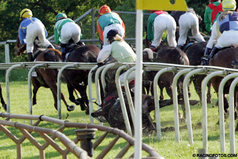 馬のサマーソルトキック!?競馬のレース中にサラブレッドが豪快に宙返りした