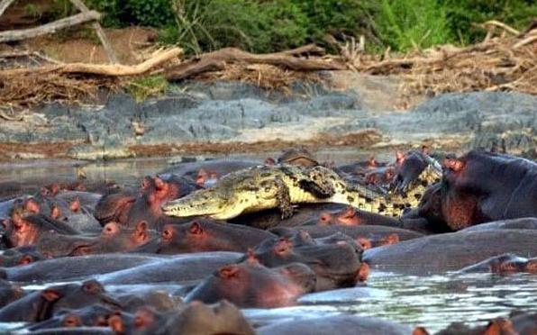では、ワニがうっかりカバと遭遇するとどうなるか…。