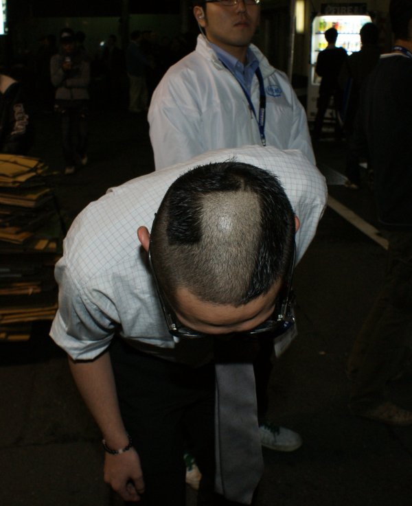 ここで会場の準備のため、15分の休憩が入りました。一度会場を出ると、ん?変な髪形…。見せてもらうと、Core i7ということで、店員さんも気合の7刈り。気合入れすぎです。しかし出るタイミングを逃して披露できなかったそうで…。