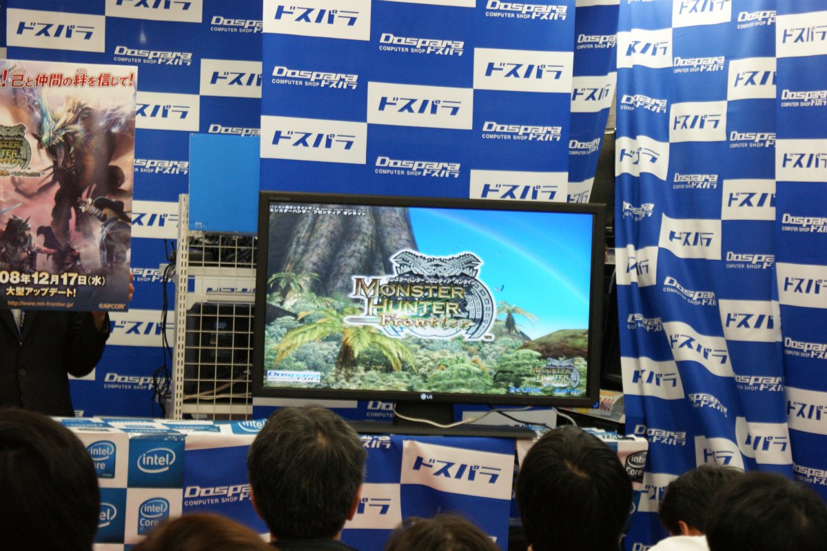 Core i7を搭載したPCで、モンスターハンターのベンチマークをデモ。