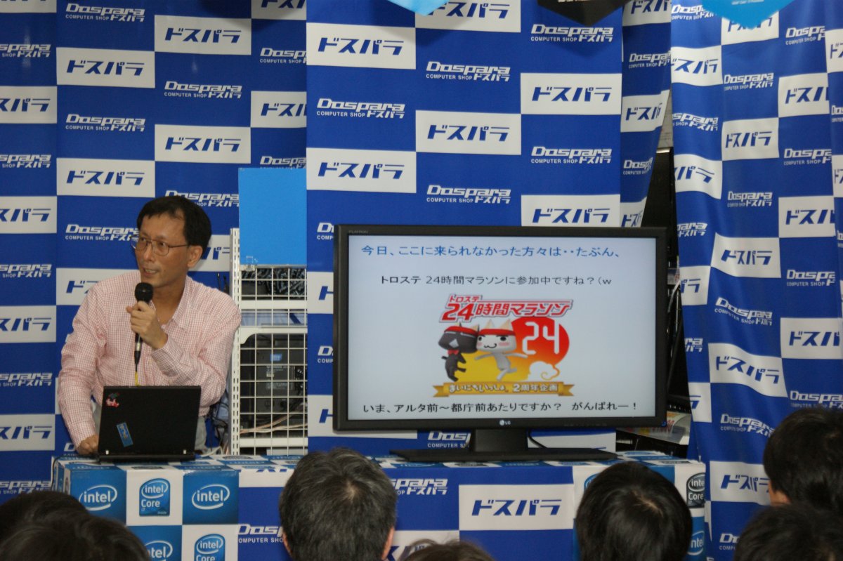 Core i7についての説明のあと、画面にはなぜかトロステ24時間マラソンが。