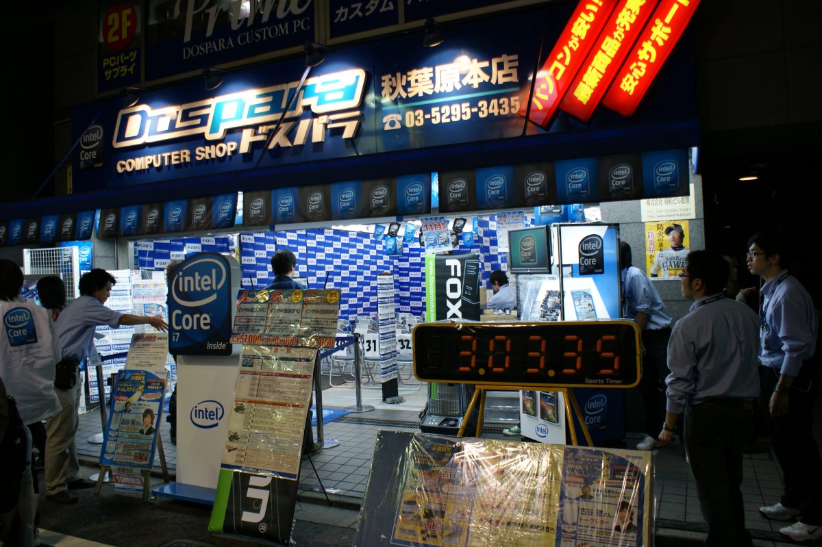 発売日前日の15日夕刻、時々小雨の降るあいにくの天気でしたが、秋葉原はCore i7プロセッサの発売ムードに包まれていました。