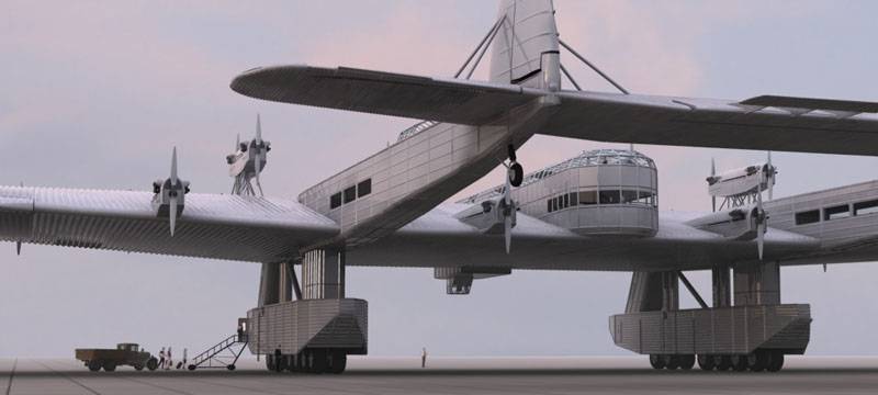 旅客機、もしくは爆撃機を予定し、主翼の中に120人の乗客を乗せる予定だったそうです。