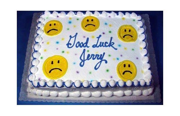 「グッドラック ジェリー」(幸運を、ジェリー)という意味で作られたと思いますが、どうやらかなり悲観的なようです。