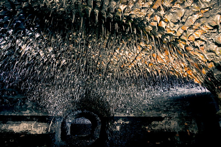 鍾乳洞のようにみえますが、この溶けている部分は赤レンガだそうです。