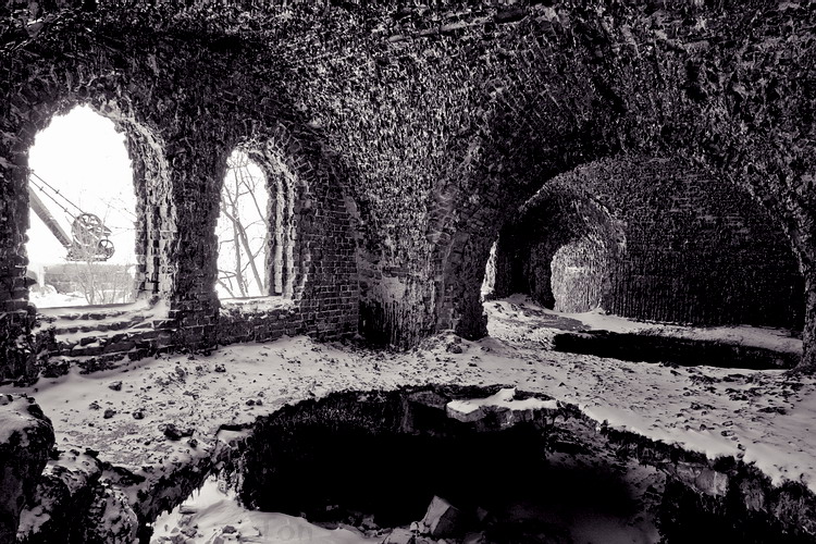 赤レンガが溶けてツララのように垂れ下がったロシアのナパーム実験場