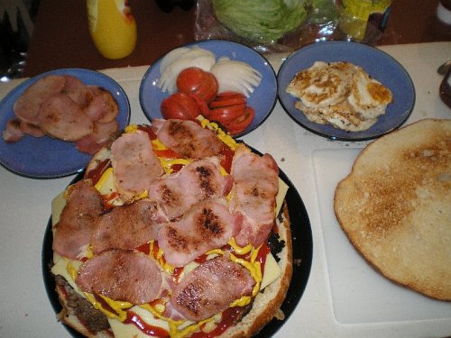 スライスした普通のハンバーガーと比較。