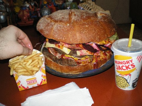 商標の関係で、オーストラリアではバーガーキングではなくハングリージャックという名前だそうです。
