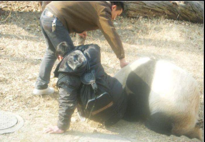 機嫌が悪かったのか、やんちゃなパンダが人間にアタック