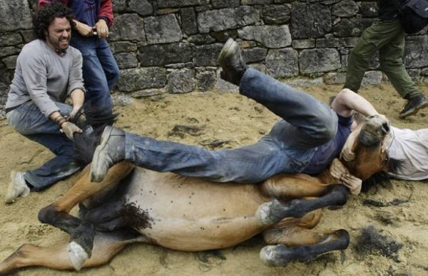 スペインといえば闘牛や牛追い祭りで有名ですが、牛がいなかったら馬とでもいうのか、野生の馬と激しく肉弾戦を繰り広げる祭りがあるそうです。