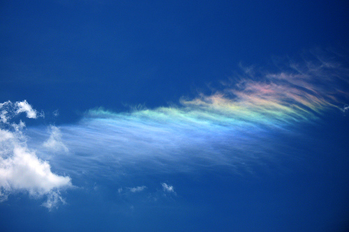 高度5千〜8千メートルにできた、同じ方向を向いた雲の氷の結晶がプリズムの役目を果たしているとのことです。