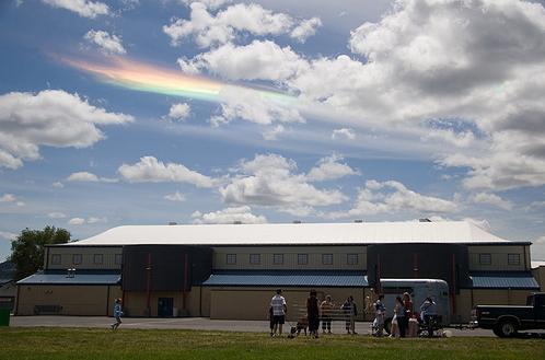 こちらはアイダホ州で観測された"fire rainbow"や"Circumhorizontal arc"(環水平アーク)と呼ばれる水平の虹だそうです。