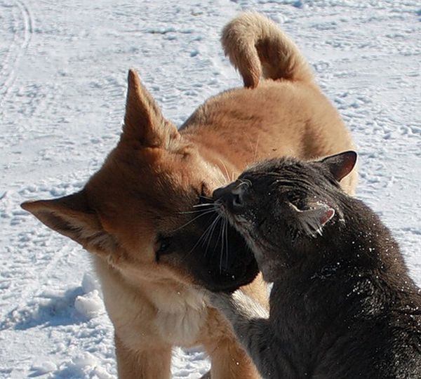 性質の違う犬と猫は相性悪いことも多いのですが、ロシアにとても仲のよい二匹がいました。