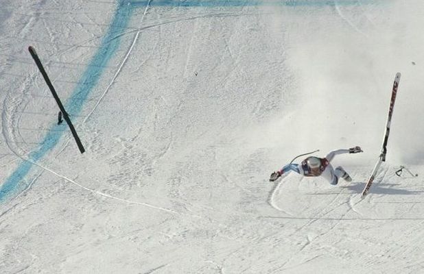 左のスキー板の吹っ飛びようが、スピードの激しさを物語っています。