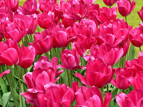 チューリップの歌では赤・白・黄色の印象ですが、オレンジ、緑、紫などの色もあります。