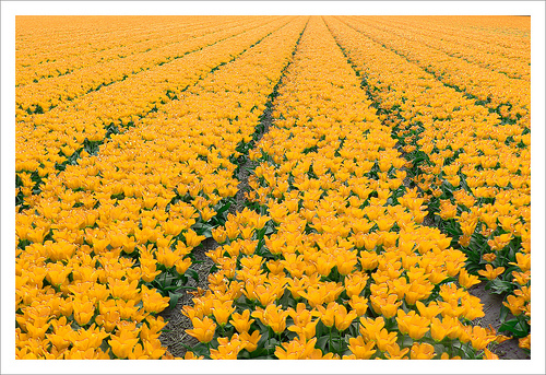 その花の本場であるオランダの、色とりどりのチューリップ畑をご覧ください。