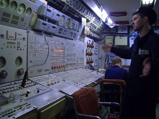 核弾頭を積んだ戦略級原潜だけあって計器類がびっしり。ウルトラ警備隊の基地みたいですね。