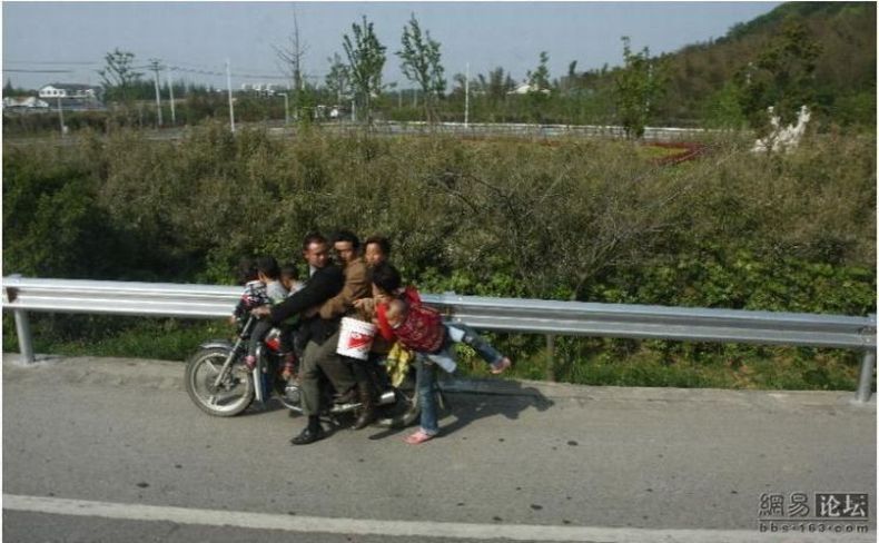 「無茶しやがって…」1台のバイクに8人乗りしている中国の家族
