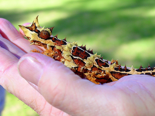 見ての通りいかつい姿ですが、体長15cmほどで手乗りにしても無害な大人しいトカゲだそうです。