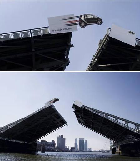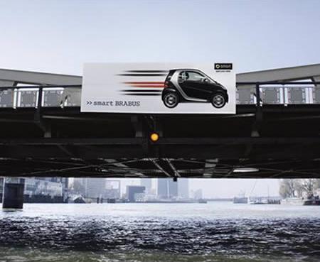 橋に掲げられた、何の変哲もなさそうな車の広告。