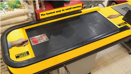 香港にあるウェスタン・ユニオンの顧客の多くは、フィリピンやインドネシアから来た出稼ぎ労働者だそうです。そこで彼らの仕事先である自働コンベアにこの広告を貼ったというわけです。