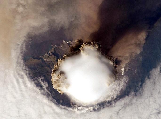 火山噴火の初期、さらに上空から見た貴重な姿をご覧ください。