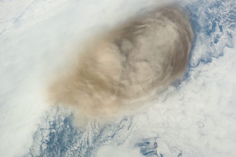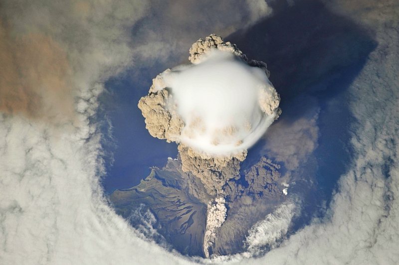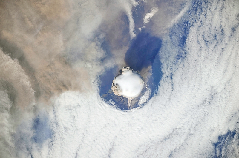 火山噴火の恐るべき姿を国際宇宙ステーションから撮影…北方領土に連なるサリチェフ山