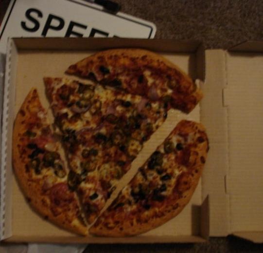 ・実はこの切り方は天才だ。ピザの耳の部分が嫌いなら真ん中を食べればよいし、好きならその周りをたべればよい。