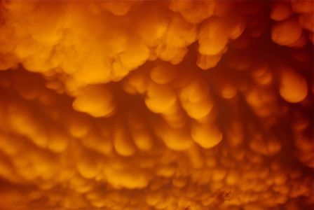 天変地異の前触れかと心配してしまう光景ですが、乳房雲はトルネードを伴うような激しい嵐の前兆となることがあるそうです。