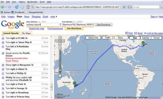 ニューヨークからシドニーへの行き方を検索したところ、「Google Map がとんでもない手段を提示しているぞ」と話題を集めていました。