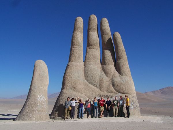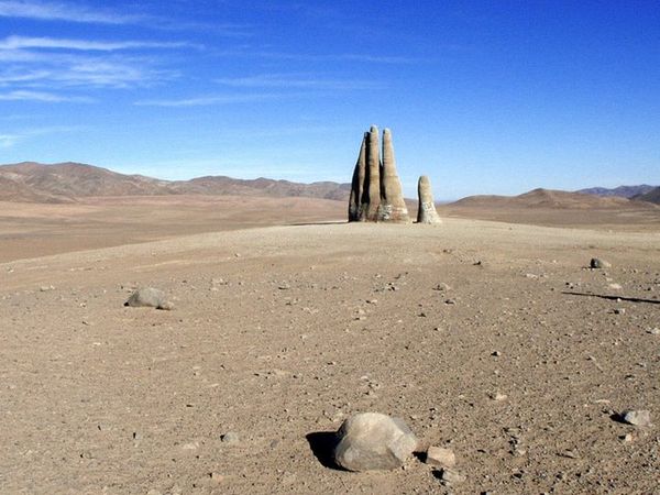 孫悟空の気分を味わえそうな巨大な砂漠の手…南米アタカマ砂漠