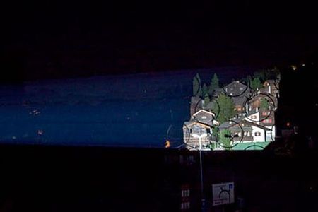 村全体を使った大がかりな仕掛けですが、やってることはアルミホイルみたいなものを貼っているだけ。