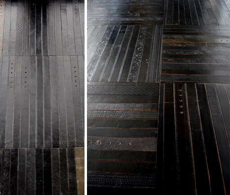 要らなくなった革ベルトを床に敷き詰めたエコロジーなアイデア商品