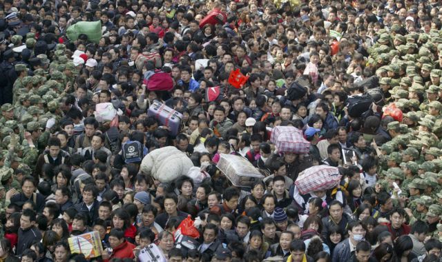 中国で祝う旧正月は1〜2月頃なので、おそらく去年以前の写真だと思いますが、切符を買う気も起こらない駅前の密集ぶり。